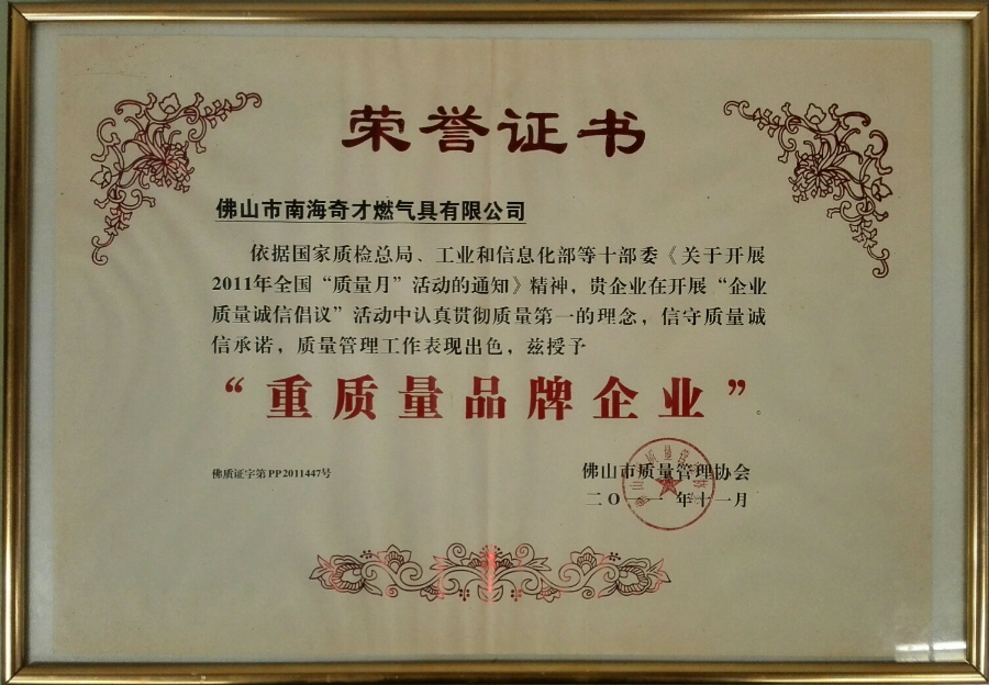 主頁 > 企業榮譽 > 企業榮譽 > 重質量品牌企業證書